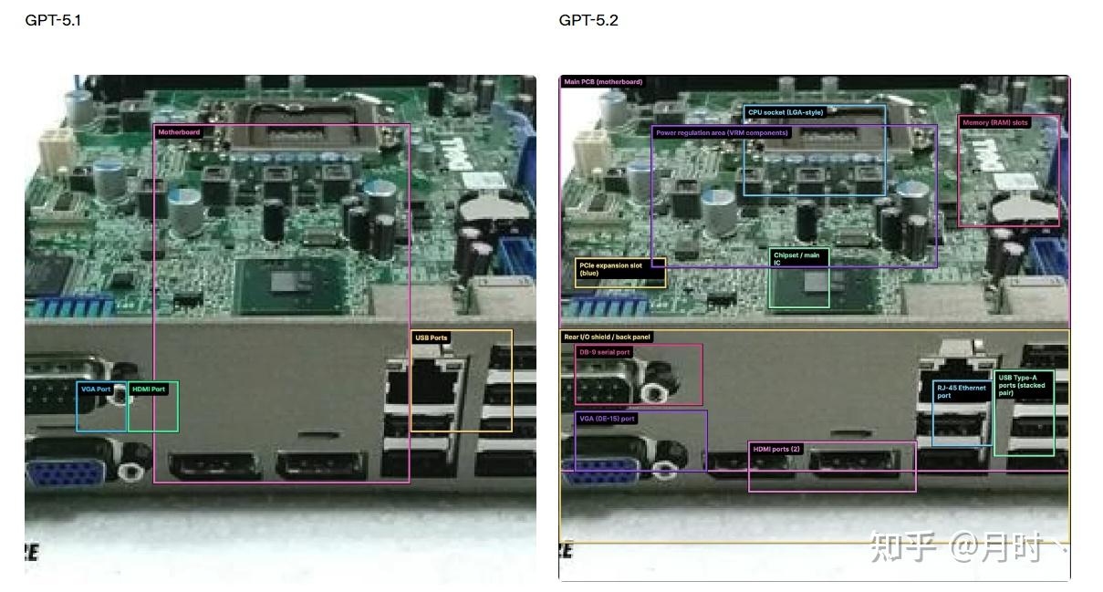 OpenAI对GPT-5.2在视觉理解方面的数据披露较少,但强调在"长上下文理解、代理工具调用和视觉能力"方面有显著改进。